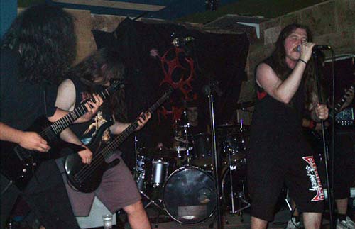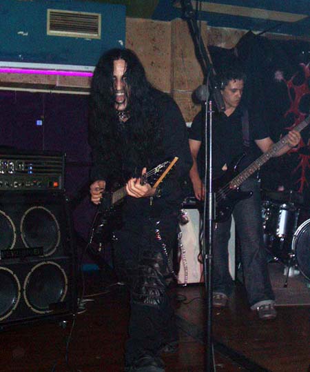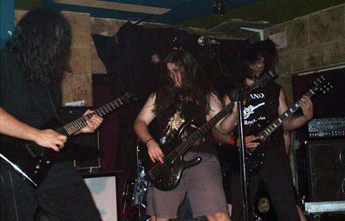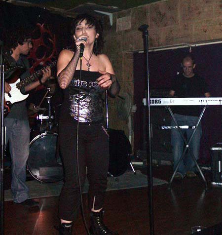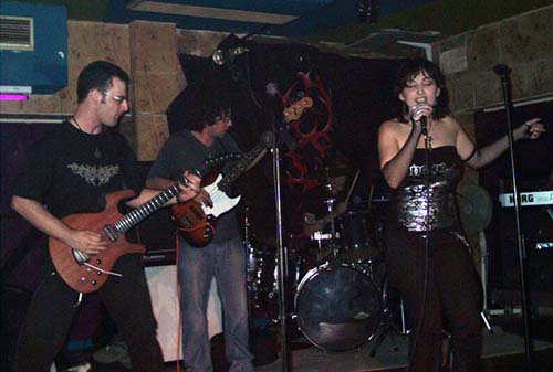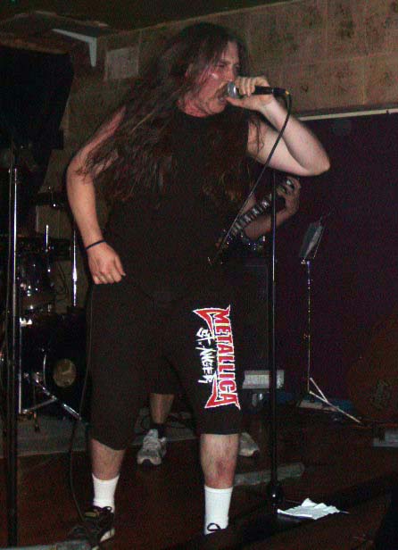Nada más tomar el quinteto el escenario, su cantante nos pedía que subiéramos las manos para aplaudir en el inicio de “En pie de guerra”. Tema que da a conocer al grupo en el CD recopilatorio, pero que comparado con la versión de directo no le hace para nada justicia. Esa noche sonó muchísimo mejor que en el CD, con mayor potencia y unos riffs de guitarras marca Metallica. Al vocalista Ani Punzano se le desconectó el micrófono, pero en vez de ponerse nervioso, animaba al público para que entrara más en ambiente. Y es que me sorprendió muy gratamente el cantante durante toda su actuación, no por su voz, que a veces la noté con falta de mayor garra, si no por su desparpajo, cachondeo (panzá de reir con sus comentarios), buenas tablas y no parar en revolucionar al público. Hacía tiempo que no veía a un vocalista de un grupo novel y desconocido, para la gran mayoría, tener una presencia y carisma tan fuerte. Lo felicito desde acá.