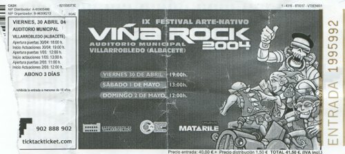 Este Viña Rock me costó una pulmonía de la cual aún no estoy completamente recuperado. Espero que la organización se replantee el asfaltar TODA la zona, ya que el barrizal que se formó en el recinto fue monumental, y ya no hablo del barrizal donde estaban las tiendas de campaña.