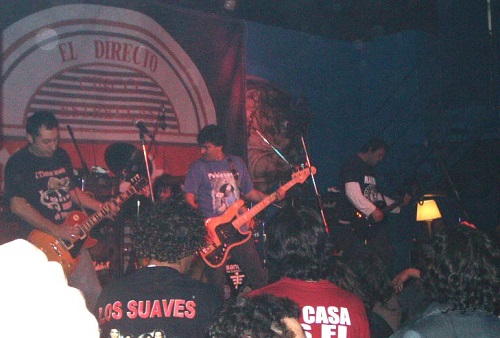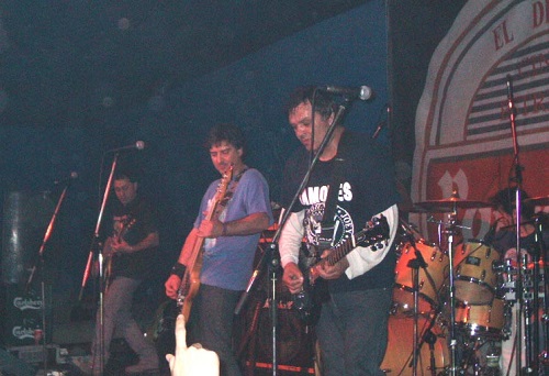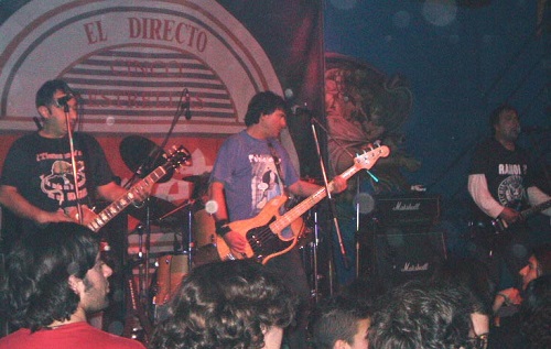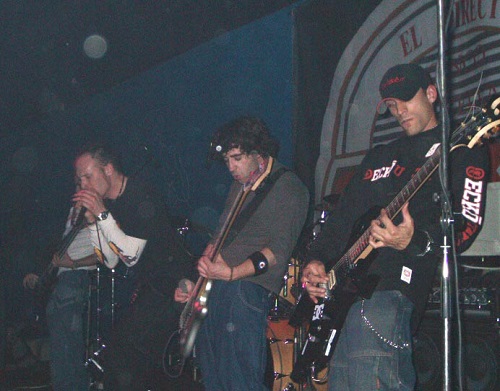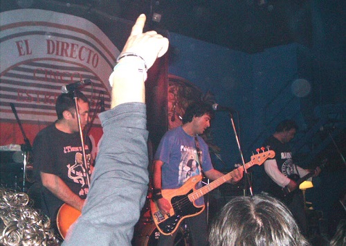 Cerca de cuarenta y cinco minutos tuvimos que esperar a los que cerraban el cartel. Prueba que te prueba instrumentos, sonido, luces… uno ya estaba hasta los “webos”, menos mal que sirvió para que se escuchara decentemente. Así que sobre las 02.15 h. y sonando como introducción la música principal de la película “La vida de Brian”, Rober y Bode se colgaban sus guitarras, Pajarillo su bajo y Luis ocupaba su asiento tras la batería (con crespón negro) y daban inicio con “Antimilitar-Antisocial” seguida por “Si bebes no conduzcas”, durante la cual una chica se subió al escenario para cantar pegándose al bajista que ni se inmutaba, uno del equipo del grupo intentando bajarla y la tía pidiendo por favor que la dejara (sí, claro, y te fichan como corista, ¡nos ha joío!)