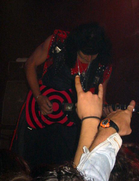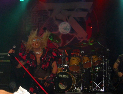Tras estos tres temas, el pertinente mini-descanso para recobrar el aliento. Dee Snider anuncia que se va a quitar la chaqueta y nos va a enseñar el pecho, como Janet Jackson, así que desaparece entre bastidores. Mientras tanto, Jay Jay French coge el micrófono y nos empieza a decir que desde que decidieron hacer esta gira de retorno, han alucinado con el público español, que es el más entregado que han conocido, y que tenían pruebas para demostrarlo. Nos dice que el año pasado tocaron en el Serie Z, hoy tocaban en Madrid, mañana en Barcelona, y que este verano iban a volver para el MetalMania, y que en este tour han hecho sólo 3 conciertos en los USA, 1 en Alemania, 1 en Suiza, 1 en Suecia… y 4 en España. Este tipo de arengas siempre tienen éxito entre el público, como se pudo comprobar. También contó que Eddie “Fingers” Ojeda y él eran compañeros de colegio en el Bronx (yo pensé enseguida que seguramente tuvieron también el mismo profesor de guitarra. Y que no era muy bueno)