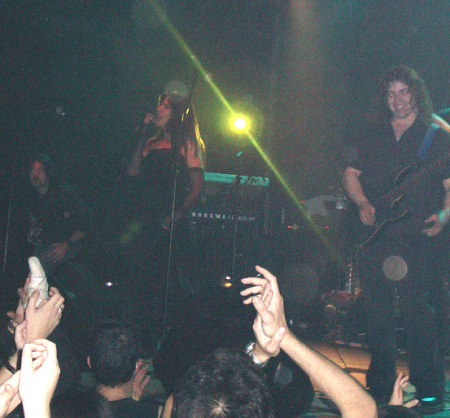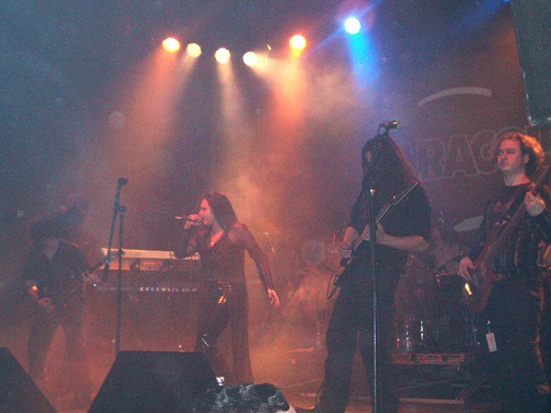 Después de la introducción, y como en su demo, enlazaban con “Night´s Cold Symphony”. Ya nos percatábamos de la línea que siguen estos madrileños, Heavy Metal técnico (ahora lo llaman Metal Progresivo, hay que reinventar etiquetas para el mercado) comparable, principalmente a unos Symphony X o Fates Warning, Dream Theater…, pero con el atractivo y particularidad de contar con una vocalista femenina que lo mismo canta en plan operístico, que con suavidad, garra… y que en repetidas ocasiones cantaba apoyando su pie derecho en uno de los “chivatos”.