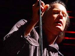 El segundo, RADIO BIRDMAN, sin duda alguna el sorpresón del festival (de Hellacopters no esperaba menos, y de los ‘Sister imaginaba lo que iba a pasar). ¿Cómo se puede rockear de esa manera con tantos años a cuestas? A Rob Younger parece como si le hubieran sacado de la tumba para dar un concierto póstumo, y casi nos volvemos con él. Era como si tuviera un interruptor y al comienzo de cada tema lo enchufaran (entre medias ni tan siquiera podía dirigirse al público, encargándose el guitarra). El repertorio letal (prácticamente su “The Essential (1974-1978)” al completo), versión de Blue Öyster Cult incluida, y el sonido simplemente bestial (el mejor del festival, sin duda). Por su parte, la puesta en escena no pudo ser más contagiosa, con esos bailes de Rob Younger a lo Iggy (brazos semipegados al cuerpo y movimientos ‘homo’) y el guitarrista luciendo imagen extravagante al más puro estilo Satriani, contrastando con un teclista que parecía haber salido directamente de un descanso de McDonald’s. Al final regalo del público a Rob Younger incluido (no sé lo que era lo que cayó en el escenario, pero se fue muy agradecido) y la ya mera convicción de que la gallina vieja es la que hace el mejor caldo. Dioses.