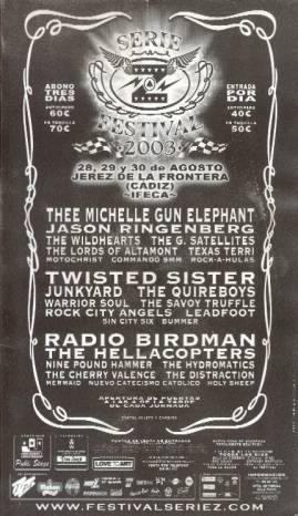 Y eso fue lo que dio de sí la improvisada edición del serie Z del 2003. Sólo resta agradecer a la organización las facilidades para nuestra asistencia, pero de paso pegarles un tirón de orejas por esos bailes de horarios y de grupos (a seguir mejorando). Dicen que ya están apalabrados grupos como Cinderella para la próxima entrega, si no pasa nada allí estaremos para verlo.