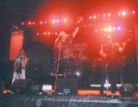El viernes día 29 estaba “clavao” como un reloj a las 16:00 horas en la puerta del recinto IFECA de Jerez. Del cartel que anunciaba a Bummer, Sin City Six, Leadfoot, Rock City Angels, Warrior Soul, Georgia Satellites, Junkyard, The Quireboys y Twisted Sister, se cayeron Leadfoot, una pena porque tenía muchísimas ganas de verlos, Rock City Angels, y esto sí que fue frustrante, ya que era una oportunidad única de ver a esta banda maldita pero cuentan las habladurías que el cantante se largó con la pasta, y Warrior Soul. Y se reubicó a última hora a los japoneses The Savoy Truffle, lo cual fue toda una bendición para las orejas como se verá mas adelante. Así que ante tal desolador panorama de caídas y movimientos pendulares sólo me quedó, previo trámite de conseguir mis entradas en taquilla, ya pagadas vía fax, con su desorden organizativo habitual, meterme para dentro a tomar el sol y una cervecita mientras salían a escena los primeros valientes.