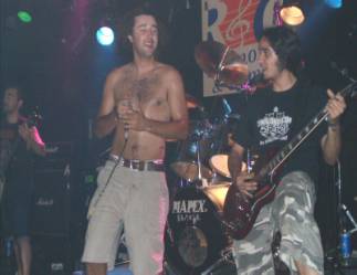 Durante su actuación el vocalista fue el auténtico centro de atención, no ya sólo por la batalla campal que tenía con el pie del micro (en una de sus arremetidas casi le pega a uno de los guitarras), sus frases cachondas: “¡Tripis, pastillas…!”, “Esta canción se la dedico a los que escuchan ahora Death Metal y ¡no tienen ni puta idea de donde viene!” refiriéndose a una versión de Sentenced, los revolcones que se pegó por el suelo… y el momento estelar, cuando el individuo recogió un cartoncillo de pastillas que estaba tirado en el escenario desde que el concierto comenzó (cuyo contenido era del todo desconocido, lo mismo era una moderna droga de diseño o un veneno letal, vamos que eso de automedicarse a ciegas no “mola”), resumiendo un autentico “angelito” bastante carismático.