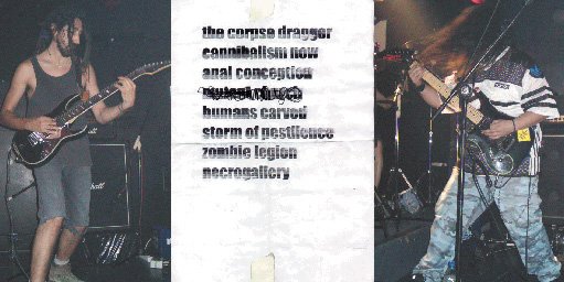El grupo técnicamente era impecable, con un batería que debe de alimentarse con gasolina, con un registro de “martilleo” propio de un martillo neumático. Estilísticamente parecidos a Suffocation y Pyrexia, pero con su toque propio más Grind. Durante su actuación resultaron muy compactos y compenetrados con un sonido muy profesional. En algunos momentos sonaban un tanto lineales (sobretodo la voz) pero esto era de sobra compensado con la dosis de violencia auditiva en grado extremo que producían. Temas como “The Corpse Dragger”, “Humans Carved”¸“Zombie Legion” y la bestialmente hecatómbica “Necrogallery” dejaron al escaso público literalmente temblando y a mí me fascinaron (de paso animo a la peña a que acuda a los conciertillos de grupos poco conocidos y apoye la escena).