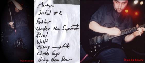 El recital comenzó con “Of Martyrs And Men”, tema que abre su último CD, ¿qué mejor argumento para inmolarse?. Tocaron clásicos como “Under The Supreme”, “Christ`s Cage” y el mítico “Father, Your Not A Father”, donde el señor Vigna mostró su total entrega en el escenario y su increíble calidad (parece mentira compatibilizar lo bien que toca con sus “bailecillos y meneos”), sin duda uno de los guitarras con más presencia en el escenario de la escena.