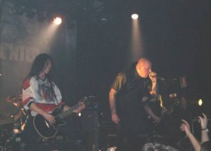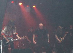 Nos incitaba a chillar animando aún más a la gente. Dedicaba a las bellas mujeres españolas “Hollow Ground”. En “D.O.A”, lanzamiento al público de un mosher, con un buen efecto de luces rojas hacia el final del tema.