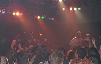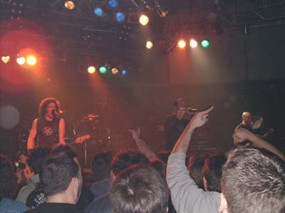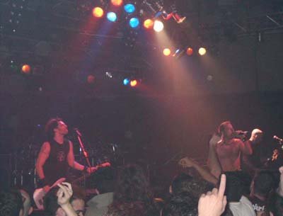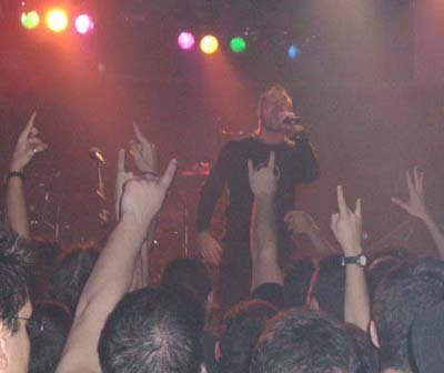 Bush se permitió más de una charla incomprensiblemente extensa, dado que se dirigió básicamente en inglés. De lo que llegué a entender, mostró su contento por encontrarse de nuevo en España después de tantos años, retó al foro madrileño a volverse más loco que el barcelonés con un ‘assholes’ a estos últimos que vi bastante fuera de lugar, hizo una pequeña encuesta acerca del número de personas pertenecientes a la vieja y la nueva escuela del heavy e hizo referencia al otro Bush, George, viniendo a resumir su teoría acerca de las ansias de conquistar el mundo por parte de la administración norteamericana basada en el complejo del diminuto tamaño del pene de su tocayo. Este último tema, el de la guerra, dio pie a que «Inside Out» diese el pistoletazo de salida a la parte más intensa del concierto. Bush se abalanzó sobre la valla y cantó apoyado en la gente que se agolpaba en la misma, provocando la entrega del respetable.