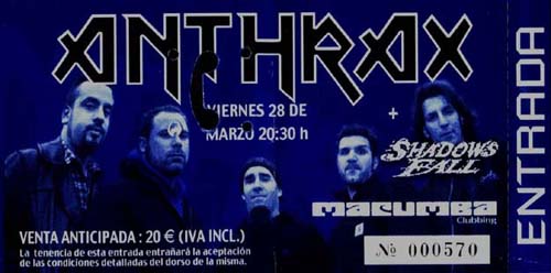 «Efilnikufesin», «Antisocial», «Black Lodge», «Nobody Knows Anything» y «Only» nos arrastraron al borde del abismo. La vieja guardia tampoco faltó y tanto «Madhouse» como «Metal Thrashing Mad» provocaron momentos de embriaguez que satisficieron al respetable deseoso de oír piezas de cada una de las épocas de los yankees. El set que escogieron fue lo bastante equilibrado como para que nadie saliera perjudicado por la elección de temas. Aún así, en «Madhouse» Bush tuvo algún pequeño percance con su garganta, cantando algún tono por debajo de lo que Belladonna alcanzaba en sus tiempos y soltando algún gallo, según me comentaron Mr. Trabuco y starbreaker (repito, yo estaba tan entregado en el meollo del corro central que pocos contras pude sonsacar esa noche).