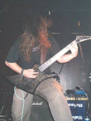 Anuncian “Nuestro caótico bullicio” como su última composición, del mismo estilo que sus anteriores extensas canciones, mezcla de Death/Black con toques de Gótico y demás estilos oscuros, repartiéndose las voces los dos guitarras (Iván y Darío), uno con voz chillona a lo Black y otro con la voz grave a lo Death Metal. Nos recordaban a Deicide con “When Satan rules his world”. Concluyendo su corta actuación con un tema que no os puedo decir el título y recordándonos que podíamos encontrar sus CDs por ahí (lástima que “ahí” no fuera en la sala, como sí pusieron a su venta material las otras dos formaciones) y que buscaban batería.