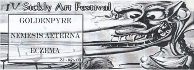 Cuarta edición de este modesto festival que cuenta siempre con la presencia de grupos de sonidos extremos. En diciembre del 2001 tuve la ocasión de asistir a la IIª edición, con los malagueños User Ne + Eczema + los vitorianos Dark Faith. En mayo del año pasado tocaron Eczema + los valencianos Nadir + los burgaleses Mistwaver. Para esta ocasión el cartel estaba compuesto por los madrileños Eczema , los gerundenses Nemesis Aeterna y los portugueses de Barroselas Goldenpyre. A Eczema ya los había visto anteriormente dos veces (comentada en The Sentinel su descarga cuando abrieron para Hypocrisy e Immortal), pero de las otras bandas poco conocía. De todas maneras allí me presenté, la entrada era bien barata (4 euros) y como suelo decir, si no acudimos a los conciertos de grupos poco conocidos, ¿cómo queremos que los grupos sigan manteniéndose y creciendo?, las bandas no surgen así como así y si no ven el mínimo apoyo llega un momento en que desilusionados abandonan. Como bien ponía en la octavilla informativa del concierto: “Acude y colabora para que podamos montar más conciertos. Apoya la escena”, aunque la gente no hizo mucho caso a esta llamada. Luego hay seguidores del Death Metal que se quejan de la falta de conciertos del estilo que siguen, pero cuando se realizan conciertos de grupos que no están consagrados (no por ello con menor calidad) pasan del tema. Bueno, realmente la gente no acude mucho a ver grupos que empiezan, sean del estilo que sean.