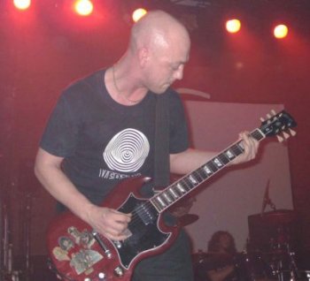 Mención del cantante al “headbanging” para otra reciente, “Skullflower”. Antes de la parte más doom Lee comienza a hacer de las suyas, metiéndose la alcachofa del micrófono enterita en la boca, es digno de ver, volviendo a repetirlo al final de la canción. Continuaban desgranando parte del actual CD, “The Empty Mirror”, el vocalista con cara de poseído, viviendo el tema intensamente, todo un frontman y showman, y el pelón Jennings con su Gibson roja con los KISS, pintados en papel, pegados cerca de los botones, haciendo coros. De la actualidad de “Congregation Of Sorcerers” al inicio del grupo con “Ebony Tears” (Doom total 100%). Estábamos disfrutando de la descarga, pero especial revuelo con este clásico de la banda. Antes del solo de Gaz, Dorrian se va agachando poco a poco agarrado al pie del micro.