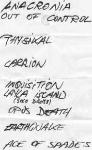 SETLIST COMPLETO (en la hoja que aparece en la imagen no están todos los temas que tocaron en realidad)