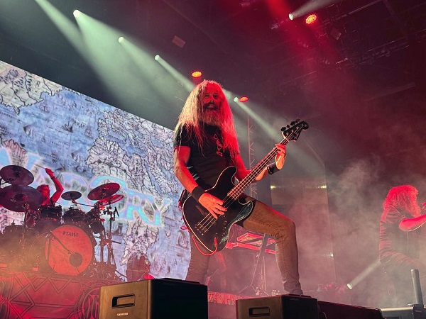 Lo más destacable de la puesta en escena es el escenario decorado acorde a su última obra reciente y la ya mítica pantalla donde, a modo de intro en el primer tema de la noche, proyecta toda la trayectoria de la banda hasta presentar a sus miembros, así como los atuendos que llevan, todos ellos vestidos de igual manera, con una única diferencia variante que ya pudimos disfrutar en el disco: Y es que para la temática y el diseño de su última obra, cada integrante pudo confeccionar un símbolo o escudo que representara algo de la persona y en sus directos han decidido utilizarlo para sus ropajes, todo ello diseñado bajo la supervisión de una profesional del sector que ha trabajado en series de renombre como “Juego de Tronos”. Sin lugar a dudas, un punto muy favorable y uno de los grandes cambios de esta nueva etapa de la banda, mucho más renovada.