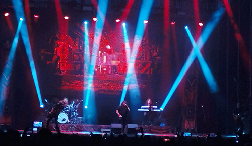 “Cielo e Infierno”, “Siempre” y “Quiero oírte” fueron las siguientes, en esta última la pantalla mostraba el videoclip de dicho tema que ya mostraron en su día en Youtube y que no dudan en utilizarlo para sus conciertos, y es que su disco “Inmortal” está muy presente en su repertorio, aunque no podemos olvidar que esta noche tan calurosa presentaba su obra más reciente, “Daimon”. Por ello el tema que iba para toda la gente que seguimos a la banda fue “Para siempre”, que en sus estrofas llega a nombrar al pueblo maldito y hace un pequeño guiño a la etapa pasada con Avalanch, con la frase “aquí estaré”.