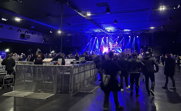 Dentro de la sala, nada más entrar, estaba el puesto de merchandising, donde además de varios vendedores, el propio Bruce Mee, organizador del evento, estaba atendiendo a quien quisiera adquirir camisetas, CDs o cualquier otro elemento de las bandas participantes en el festival. En un lateral de la sala había una amplia barra para pedir bebidas y, al fondo, un imponente escenario bastante grande, bañado por un juego de luces muy bien diseñado.