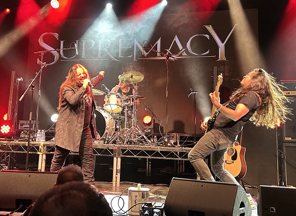 Debo decir que Supremacy salieron a comerse el escenario, a pesar de la hora, poco después de las 12:30 del mediodía. La banda es un cañón. Gus Monsanto tiene una voz poderosa, Diego Acevedo es un batería muy competente y la exhibición que dan los chicos de las cuerdas es espectacular, tanto en lo musical como en lo visual. Paul Saint-Lyonne es un bajista de la escuela Billy Sheehan, con movimientos y forma de tocar muy parecidos. Y Danny Acosta es un gran guitarrista, además de no parar de moverse en todo el concierto, ofreciendo un gran show.