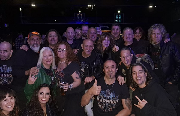 Gratamente sorprendido, me puse a hablar con él, quien me contó que pertenece a una especie de asociación llamada BarnAor que, como su nombre indica, reside en Barcelona (y Cataluña en general) y son seguidores del Hard Rock melódico, y que había ido con algunos de sus compañeros a ver el festival. Le dije que me iba a acercar al escenario y se vino conmigo, así que nos pusimos con el resto de miembros de BarnAor.