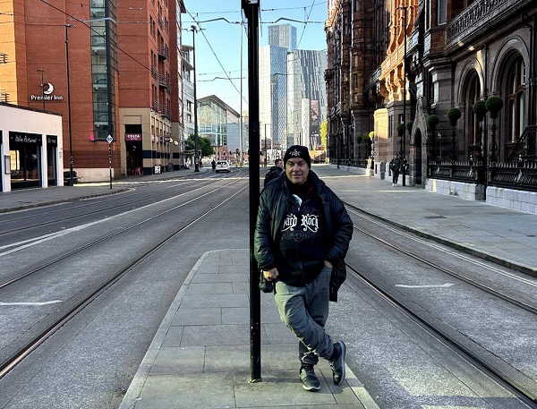 Una vez llegamos al destino nos encontramos con una nave con cientos de instrumentos disponibles. A su cargo, un joven muy amable (algo común en los habitantes de Manchester, como pudimos comprobar todos los días) nos atendió y nos entregó los instrumentos reservados. Debido a su peso, Gustavo y José Luis se volvieron al hotel en Úber, mientras que el resto del grupo (Gustavo Di Nóbile, Cozy, Raquel y yo) nos volvimos andando. Entre otras cosas, yo quería pasar por el Hard Rock Café para comprarme una camiseta, algo que hago en todas las ciudades donde voy, siempre que es posible y hay un establecimiento de la franquicia.