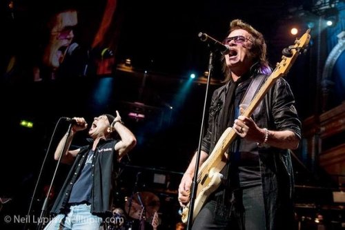 Paul Weller se encargó de recordar tiempos pretéritos con dos temas de The Artwoods, banda de Jon Lord en los 60. Acto seguido fue el turno de rememorar el proyecto de finales de los ’70 Paice Ashton Lord con “Silas & Jerome” y “I ‘m Gonna Stop Drinking”, con Ian Paice a los tambores, Bernie Marsden a la guitarra y la estupenda voz de Phil Campbell, de The Temperance Movement, la más reciente sensación del hard rock británico. Sin tiempo para recuperarnos llegó la hora de recordar al Mark III de Deep Purple, en primer lugar con una versión orquestal de “Soldier Of Fortune”, cantada por Steve Balsamo y Sandi Thom. Tras ello vino el posiblemente mejor momento de la noche, protagonizado por Glenn Hughes y Bruce Dickinson, quienes con Ian Paice y Don Airey, además de la House Band, pusieron al Royal Albert Hall en pie con dos versiones de Deep Purple, “You Keep On Moving”, del “Come taste the band”, y “Burn”, del disco homónimo. En ambos temas Glenn y Bruce demostraron ser dos de los más grandes cantantes de hard rock / heavy metal de la historia (Bruce también demostró que no sabe muy bien qué hacer en escena si no corre de un lado para otro). Tras despedirse Bruce con un “Hasta pronto”, Glenn Hughes interpretó con brillantez “This Time Around” recordándonos de nuevo el convulso “Come taste the band”.