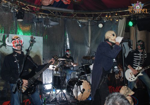 El concierto comenzó con “Rotos y quemados”, tema que da título a su segundo y último disco, con toda la banda cubierta por máscaras de lucha libre mexicana, excepto la máscara de calavera del vocalista Iban Viedma, quien también vestía un frac. El grupo lo forman, además, Alfonso Zarzosa (guitarra), David Zarzosa (bajo) y el jovencísimo Daniel Lizarraga (batería).