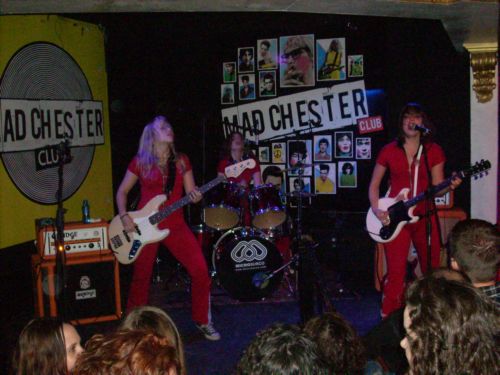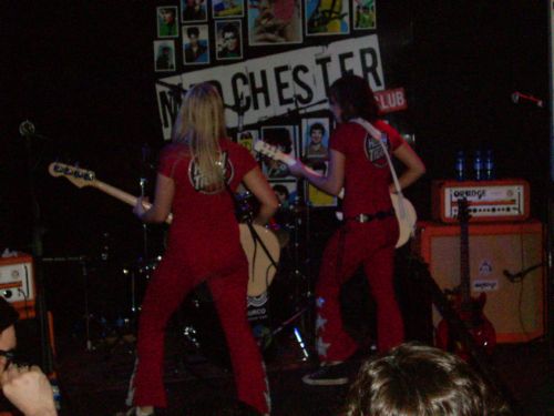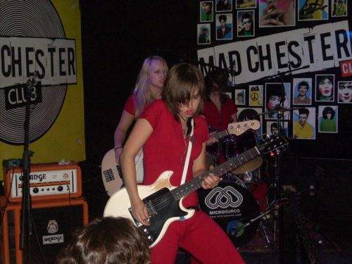 Sería la una de la madrugada, o poco más, cuando aparecieron las tres chiquillas de la capital se Suecia enfundadas en monos rojos (al más puro estilo de The Runaways, como bien me dijo Antonio Sierra) y con el logo de la banda en sus espaldas. Logo que he visto que lucían en un telón de fondo en otros conciertos, pero aquí no lo pusieron. El público, realmente podría y debería haber sido un poco más numeroso, aunque los que estuvimos nos pegamos al escenario, y creo que en su gran mayoría sobrepasábamos la edad de las féminas, incluso pudiendo ser algunos los padres de ellas. Maja Linn (guitarra / voz) y Sara Frendin (bajo y coros) nos daban la espalda en el comienzo, mirando hacia Astrid Carsbring (batería / voz), tocando de inicio el riff de «Riff Raff» de los grandiosos AC/DC, pero sólo sirvió como introducción, ya que rápidamente tocaron «Saigon Kiss», el tema-título y con el que comienzan su álbum, además de ser el único que había escuchado antes de la descarga. A éste le siguió, al igual que en el álbum, «Chinatown», nada que ver con la canción de los Thin Lizzy, aunque sí tiene algo de regusto a los irlandeses, siendo uno de los grupos que influencian a las suecas, de hecho en su EP realizan una versión al «No One Told Him» de los Lizzy. Realmente esos temas rockeros pero con melodías y coros pegadizos y asequibles no me dijeron mucho en directo, al igual que otra del larga duración, «Mover».