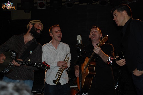 El nombre del grupo invitado sólo se había hecho público pocos días antes. TRACK DOGS eran totalmente desconocidos para mi, y apenas me dio tiempo a investigar algo sobre ellos antes del concierto. Sólo pude averiguar que es una banda formada en Madrid pero que sus componentes hay dos irlandeses, un inglés y un norteamericano. En concreto, son Garrett Wall (guitarra, ukelele y voz), Robbie K Jones (cajón, banjo & voz), Howard Brown (trompeta y voz) y Dave Mooney (bajo, ulelele y voz), y hacen una especie de folk semiacústico.